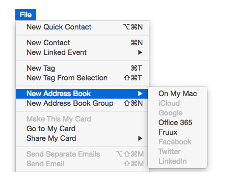 Một số máy chủ (iCloud và Google) chỉ cho phép một sổ địa chỉ, trong khi những người khác (Exchange, Fruux và Zimbra) cho phép nhiều sổ địa chỉ. Nếu bạn đang sử dụng máy chủ hỗ trợ nhiều sổ địa chỉ, bạn có thể tạo sổ địa chỉ bằng cách chọn File> "New Address Book".