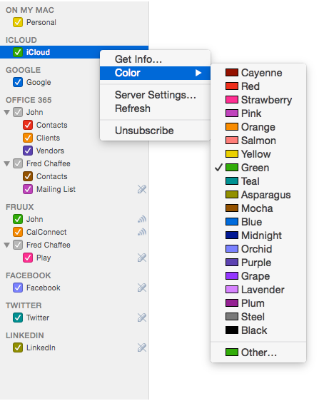 Bạn có thể thay đổi màu của sổ địa chỉ (và màu của tất cả các liên hệ của nó) bằng cách giữ phím Control để nhấp vào sổ địa chỉ và chọn một màu, hoặc nhấp đúp vào nó để mở hộp thoại Thông tin sổ địa chỉ. Bạn cũng có thể tô màu nhãn
